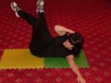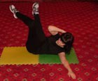 Не меняя исходного положения, поднимите обе ноги и тянитесь к ним локтем. Чем прямее ноги, тем сложнее их поднимать. Не забывайте о том, что эти скручивания – боковые, не разворачивайте грудь к ногам. Повторите 20-30 раз.