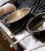В середину «блина» положить начинку, осторожно сложить, края защипать, после чего обжарить в раскаленном масле.