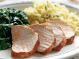 Кусок постной свинины с кожей натереть жиром. Запекать в горшке или жаровне целым куском полчаса при температуре 250 градусов. Когда подрумянится, перевернуть и дожарить при температуре 170 градусов, поливая выделяющимся соком полтора часа. Мясо вынуть, всыпать муку, соль, перец, влить сливки и дать им упариться.