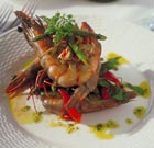 Жарить в сотейнике в один слой на растительном масле вместе с кусочками чеснока 3 минуты. Быстро вынимать и выкладывать на блюдо.