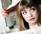Занявшись боковыми прядями, приподнимайте волосы, стараясь хорошенько просушить их у корней. Затем разделите волосы на меньшие пряди и расчесывайте каждую пальцами, направляя на нее поток воздуха из концентрирующей насадки. И только потом беритесь за макушку.