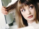 Челку разделите на отдельные пряди. Слегка закрутите их и уложите вперед, просушивая холодным или едва теплым воздухом.