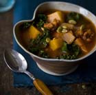 Из расчета на 2,5 л воды потребуется: 4 картофелины, 200 г капусты, зелень петрушки и укропа, 1 зубчик чеснока, 5 ст. ложек растительного масла, соль и черный молотый перец по вкусу.