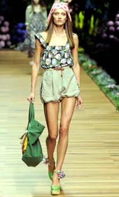 Пестрые принты а-ля восточный базар больше никому не кажутся чрезмерными. Никого не пугают сочные оттенки красного, розового и оранжевого, которые сами по себе являются мощнейшим акцентом образа. Насыщенный зеленый, голубой и желтый летом 2011 выглядят по-детски привлекательно.