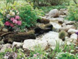 Водные садики с бегущей водой особенно привлекательны. Даже в самом маленьком водоеме можно оборудовать фонтанчик, вода в который будет поступать из водопровода. Водоснабжение такого фонтанчика осуществляется с помощью садового шланга, один конец которого подсоединяется к водопроводу или насосу, а другой маскируется среди камней.