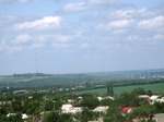 Вид из окна. Всему миру теперь известная гора Карачун и телевышка. Справа от нее город Славянск. От меня это где то 7-8 км.