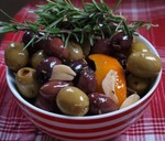 350 гр. консервированных зеленых оливок 3/4 кружки оливкового масла 2 широкие полоски свежей апельсиновой цедры 2 столовые ложки свежевыжатого апельсинового сока 1 чили-перчик 2 зубчика чеснока 2 лавровых листа 1 чайная ложка семян фенхеля 1 веточка розмарина 1. Объединить все ингредиенты в любой подходящей емкости. Аккуратно перемешать. Накрыть крышкой и поставить в холодильник как минимум на сутки. 2. Читать далее» |