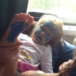 Загорели пятки и веки даже)) Пока Оля правила оттенок загара, Маша почти уснула. |