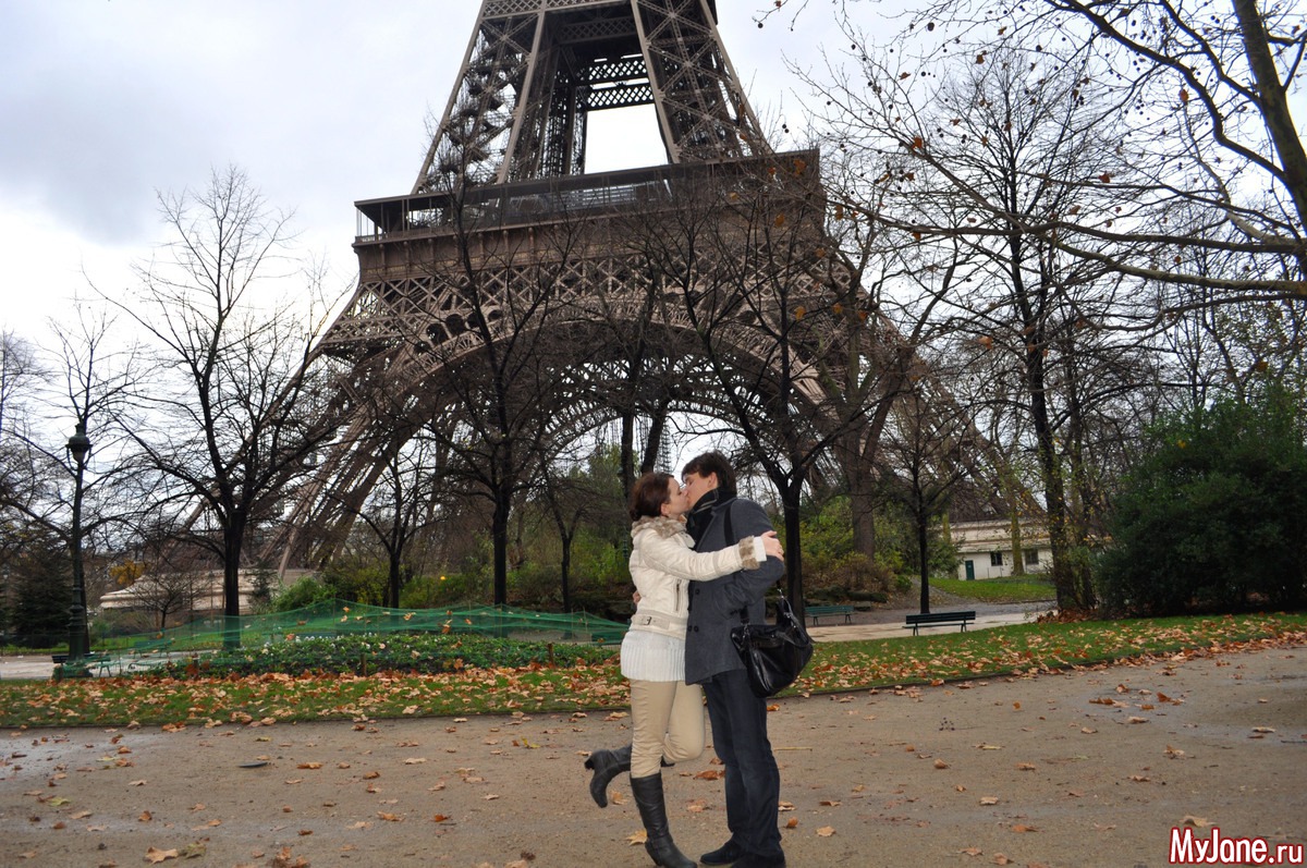 «Французский поцелуй у подножия Эйфилевой башни. Сбылась мечта - свадебное путешествие в Париж!»