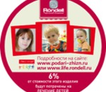 Совместный благотворительный проект марки Röndell и Фонда «Подари Жизнь» продолжается, и будет идти весь 2011 год! Возможно, благодаря совместным усилиям, еще одним здоровым ребенком на нашей планете станет больше! Спасибо за Вашу отзывчивость!