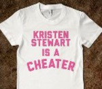 Один из виртуальных магазинов Skreened решил, что можно поживиться на истории с изменой Кристен Стюарт. Он выпустил коллекцию футболок и написал на них обидные для знаменитости слова: «Кристен Стюарт обманщица», «Кристен Стюарт трампир» и многие другие.