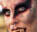 Единственной на свете женщине-вампиру - 33. Её зовут Мария Хосе Кристерна. Она живёт в Мексике. Кроме клыков, на её лбу легко найти пластины из титана, рога, вживлённые в виски, и многочисленные татуировки, украшающие тело.