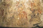 Также, на фреске сохранились остатки надписей, однако археологам пока не удается их расшифровать - надписи выполнены ранее не встречавшимися ученым иероглифами.