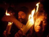 Благодатный огонь появился в храме Гроба Господня в Иерусалиме после молитвы патриарха Иерусалимского Феофила и десятков тысяч паломников о ниспослании чуда.