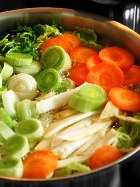 Все овощи и зелень следует тщательно промыть и порезать, залить холодной водой и отварить до готовности. За 2 минуты до окончания варки к ним добавить предварительно отваренный рис и мелко нарезанную зелень зеленого лука и сельдерея.