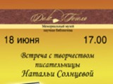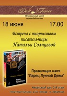 18 июня в 17.00 в читальном зале Мемориального музея – научной библиотеки «Дом Гоголя» состоится вечер-встреча с творчеством популярной писательницы Натальи Солнцевой, автора книг известной серии «Артефакт-детектив», и презентация ее нового романа «Ларец Лунной Девы».