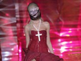 Gaultier, желанной гостьей которого стала Мадонна. Маэстро и на этот раз не отказался от привычки удивлять. Среди его работ драпированные платья, шифоновые блузы с широкими плиссированными рукавами, классические смокинги, узкие золотые и серебряные юбки.