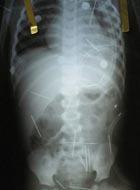 Мальчика доставили в сальвадорскую больницу, потому что у ребенка началась рвота (одна из игл проколола легкое). Врачи никак не могли понять, в чем дело, а потому сделали рентген. Увиденное повергло их в шок… В тельце застряло почти полсотни игл.