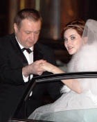 Дед новобрачной, Михаил Горбачёв, подъехал к ресторану, сопровождаемый кортежем из двух чёрных "Мерседесов" с милицейскими мигалками. После него на праздник прибыла невеста - Анастасия Вирганская.