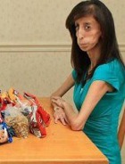 Чтобы выжить, девушке приходится ежедневно съедать 5-8 тысяч калорий в сутки. Несмотря на такое огромное количество еды, Лиззи весит всего 25 кг при росте 152 кг.
