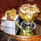К сандэ (десерту) также подается золотая ложка, украшенная двумя видами бриллиантов – белыми и шоколадными. Как ложка, так и бокал становятся подарками для тех, кто заказал сандэ. Заметим, что их стоимость – 8800 евро.