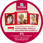 Совместный благотворительный проект марки Röndell и Фонда «Подари Жизнь» продолжается, и будет идти весь 2011 год! Возможно, благодаря совместным усилиям, еще одним здоровым ребенком на нашей планете станет больше! Спасибо за Вашу отзывчивость!