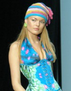 Коллекция Дианы Дорожкиной под названием «Подарок для Герды» было по-настоящему сказочной и по-зимнему уютной, благодаря вязанным шапочкам и гетрам. Немного детский и наивный вид придавали многочисленные спиральки, и яркие цвета. Платья уютные вязанные и летящие шелковые, но обязательно с цветами самой различной формы, что придет зимней коллекции летнее согревающее настроение.