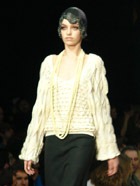 Завершающим штрихом недели моды стала долгожданная коллекция Алены Ахмадулиной, которая принимала участие в Парижской неделе моды. Темой коллекции стал авангард 20-30-х годов прошлого века. Показ Алены позволил по-настоящему окунуться в атмосферу тех времен: прямой силуэт, заниженная линия талии, хорошо подобранные под настроение коллекции приглушенные цвета, оригинальное музыкальное оформление. Модели Ахмадулиной всегда отличает четкость и безупречность кроя, гармоничность и ненавязчивость. Оригинально геометрическое решение одежды создавало ощущение, что она выполнена из бумаги. А сарафан и юбка с меховыми полосками делали девушек-моделей похожими на пушистых гусеничек.