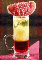 Он состоит из трёх слоёв: самый нижний – биттер «Кампари» (50 мл), второй – сок апельсина (100 мл) и верхний – настойка «Бехеровка» (50 мл). Налить в бокал и не мешать. Подать с долькой грейпфрута.