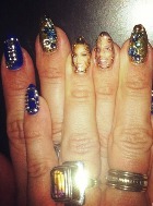 Итог ваяния Бейонсе продемонстрировала на своей странице в Tumblr. На снимке отчётливо изображены портреты Jay-Z и Бейонсе. А также их инициалы, выложенные стразами. Звезда отметила: жаль, что изображение не вечно. Возможно, в следующий раз к двум лицам на ногтях певицы добавится ещё одно - малышки Иви Блу.