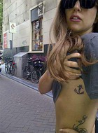 Скандально известная певица Леди Гага сделала новую татуировку. Тату в виде якоря украсила левый бок певицы.
