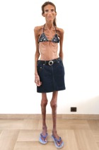 Вес женщины, примерно 20 лет страдающей анорексией, – 25 килограммов. Она бы рада больше не худеть, но это очень сложно. Она приходит в ужас от того, что девочки, что пишут ей, в восторге от её фигуры и хотят во что бы ни стало сбросить вес.