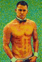 Позировал Месьеру не актёр, а... его снимок, взятый из картины «Супер Майк». 500 часов художник подарил портрету, истратив на него 5 000 килограммов конфет от фирмы «Mike and Ike». Для каждой части тела Ченнинга Месьер использовал не только разный сорт, но и цвет конфет. Понравился ли результат актёру – неизвестно.
