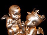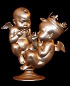 Мастер увидел не родившихся ещё малышей двух знаменитостей в образе ангелов, имеющих короткие кудряшки. И представил их в бронзе. Напомним, что руке художника принадлежат не менее странные работы: рожающая Бритни Спирс, скульптура Бранджелины, фекалии Сури Круз и многие другие.