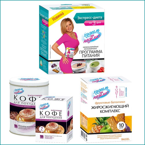 - Программа питания «Экспресс-диета на 3 дня» (программа действует по трем направлениям: завтраки рассчитаны на снижение аппетита в течение дня, обеды стимулируют «сжигание» накопленных жировых отложений, вечерний прием способствует очищению организма.А для тех, кто не может отказаться от сладкого, приготовлен сюрприз: в программу входит «Горячий шоколад с коллагеном» - для упругости кожи и просто хорошего настроения).