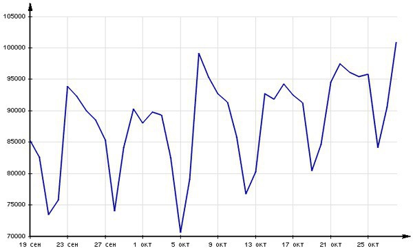 28 октября социальная сеть "Страна Мам", посвященная вопросам материнства, впервые достигла порога посещаемости в 100 тысяч уникальных посетителей в сутки.
