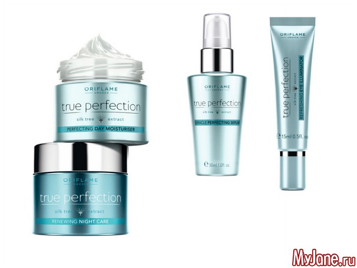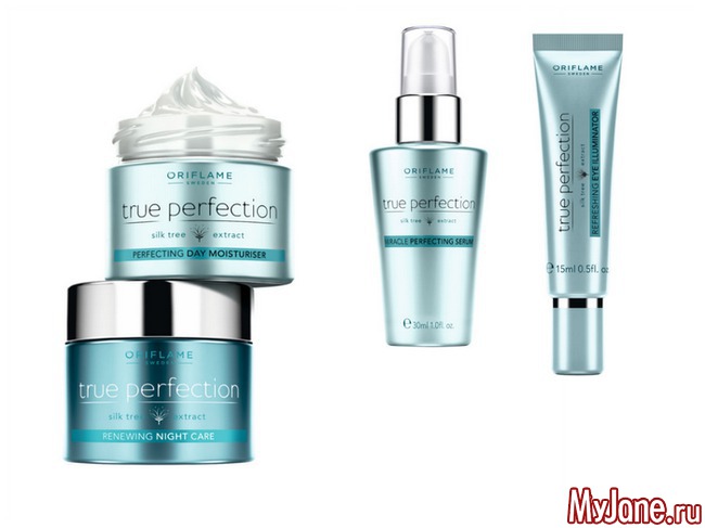 В серии True Perfection от Орифлэйм представлено четыре продукта: Сыворотка мгновенного действия для совершенства кожи True Perfection, которая не только моментально дарит коже сияние, но и работает на долговременный результат, в то время как Дневной увлажняющий крем и Ночной обновляющий крем-бальзам для совершенства кожи True Perfection оказывают долговременное действие, возвращая коже сияние, здоровый цвет лица и гладкость. Освежающий Крем для совершенства кожи вокруг глаз True Perfection уменьшает темные круги и припухлости под глазами и разглаживает первые мимические морщинки.