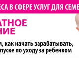 - совмещать воспитание своих детей и получение доходов от Вашей собственной предпринимательской деятельности;
