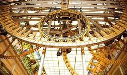Вес механизма – 4,5 тонны. Он состоит из 5 тысяч хорошо подогнанных деталей из алюминия, золота, титана. Размеры механизма – 6х7 метров. Он установлен на высоте пятого этажа и будет регулироваться планетарным механизмом и корректироваться с помощью инновационного электронного устройства.