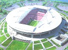 Стадион напоминает одновременно и космический корабль (летающую тарелку), и просто огромную пиццу.
