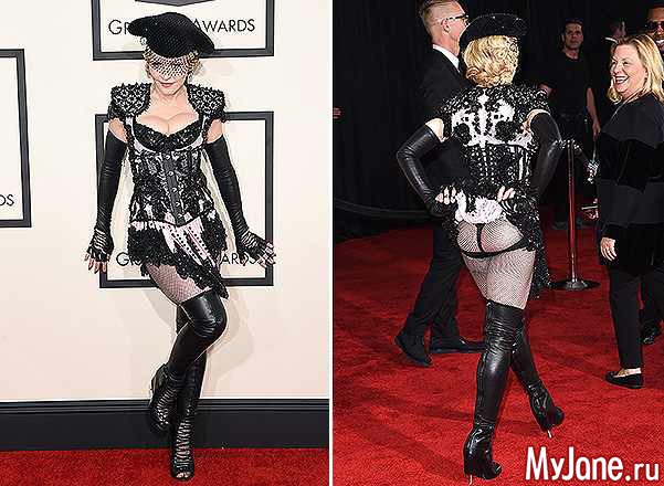 В очередной раз отличилась и певица Мадонна. Костюм Givenchy превратил звезду в главную клоунессу вечера. Впрочем, и сама королева поп-сцены постаралась, чтобы запомниться. Она задрала хвост своего сюртука и показала пятую точку, подтянутую пуш-апом.