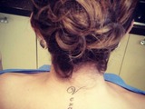 Место для имени нашлось довольно скоро – под волосами, на спине. «Я долго думала, - рассказывает Юлия, - где сделать татуировку в честь любимой доченьки, и всё-таки нашла место. Это мое любимое имя!!!»