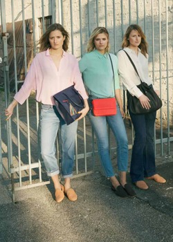 Девушки представили одежду casual стиля – свободные джинсы, легкие блузки и рубашки, а также сумки ярких цветов. Повседневный образ моделей дополнили легкий макияж и взъерошенные волосы.