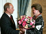 Одним из первых Терешковой преподнёс цветы Владимир Путин. Об этом сообщили представители пресс-службы Кремля. С их слов, Путин отметил, что выдающиеся достижения Терешковой и бесценный опыт женщины, впервые полетевшей в космос, чрезвычайно значимы для развития страны. Он подчеркнул активную позицию именинницы, её энергию, талант и красоту.