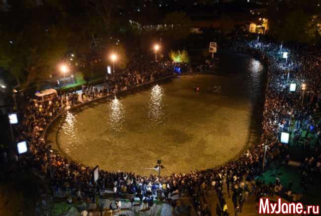 Рэпер Канье Уэст устроил в Ереване бесплатный концерт, а после исполнения песен прыгнул в пруд.