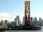 Монумент установлен на берегу Гудзона на противоположной стороне от того места, где стояли разрушенные террористами башни ВТЦ. Это расколотая бронзовая плита, символизирующая рухнувшие здания, а внутри трещины подвешена 12-метровая стальная капля.
