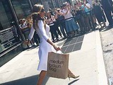 На нем Джессика в образе Кэри Брэдшоу выходит из легендарного универмага Bloomingdale’s с пакетом. Вдалеке виднеется толпа поклонников, а территория огорожена. Очевидно, что это место съемок.