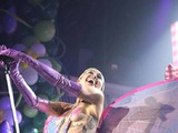 Певица посчитала, что достаточно прикрыть соски найклейками бабочками. Макияж у звезды тоже был престранный. Майли, куда ты катишься?..