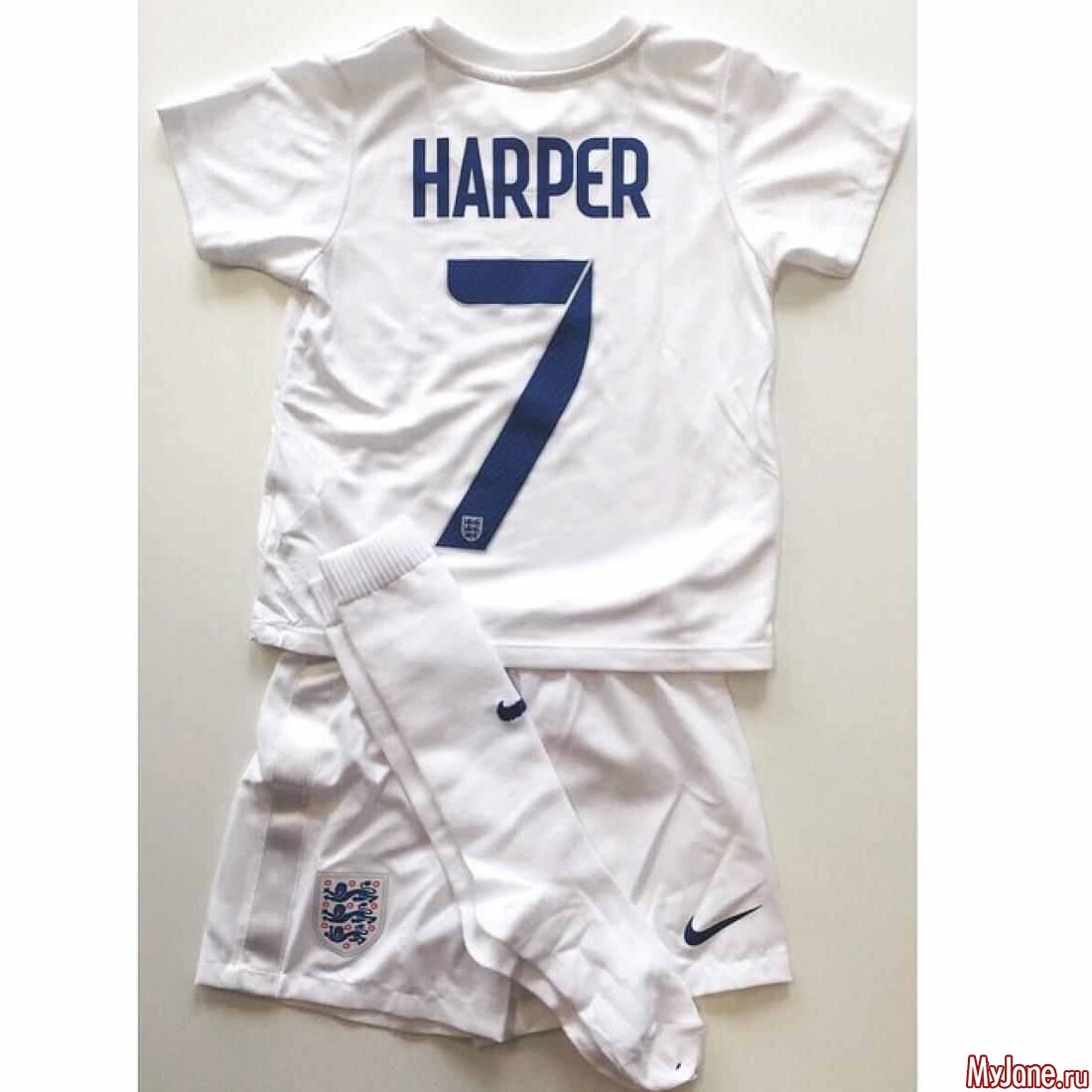 Так что Харпер с большой охотой гоняет мяч. А недавно родители даже заказали ей белую именную спортивную форму с номером «семь». Надеемся, в ней малышка будет забивать еще лучше!