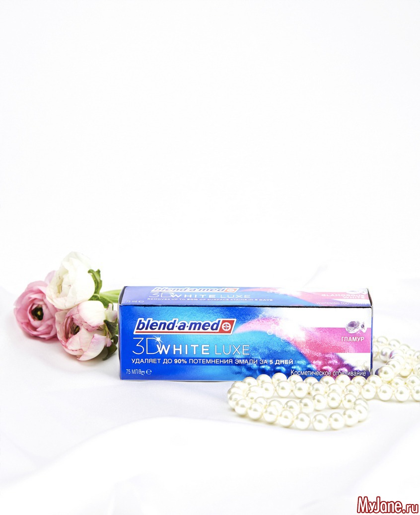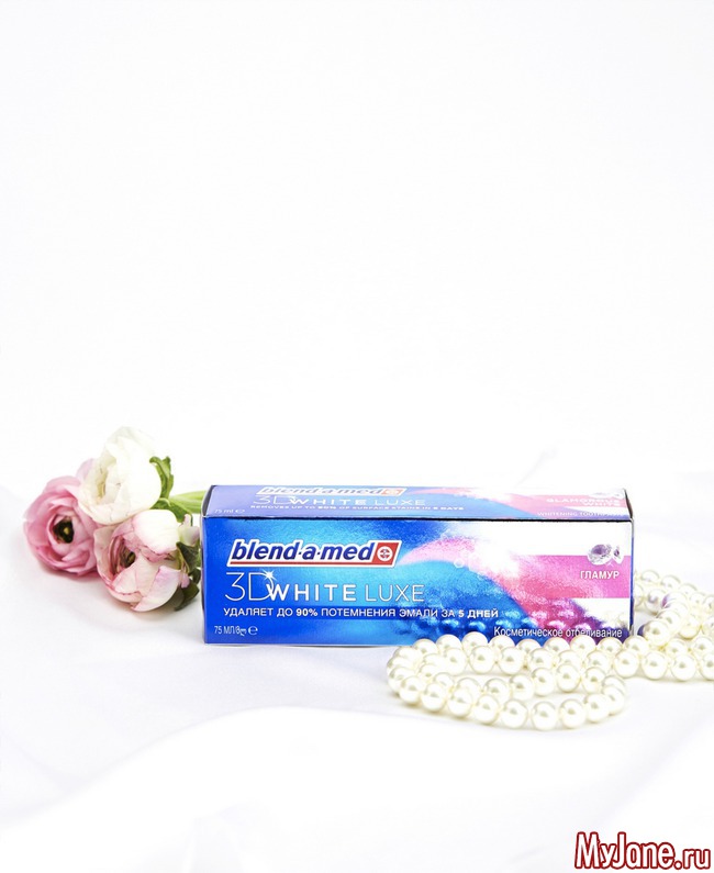Зубная паста Blend-a-med 3D White Luxe Гламур дарит невесте ослепительную улыбку, которая в этот важный день станет не меньшим украшением, чем сияние драгоценных камней. Этой уникальной зубной пастой с технологией Whitelock™ можно начинать пользоваться за неделю до дня свадьбы - всего за 5 дней она удаляет до 90 % потемнений эмали, укрепляет ее и поддерживает естественную белизну, а также дарит улыбке особый блеск и сияние.